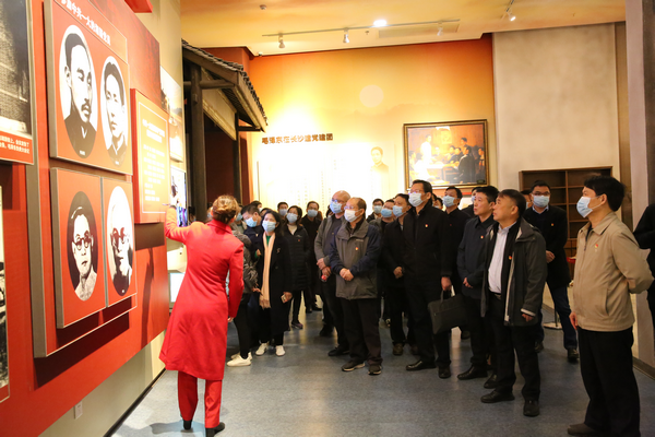 來到湖南黨史陳列館,一行人向館內“瀟湘魂”開國元勛雕像敬獻花籃,低頭靜默肅立,并行三鞠躬禮。隨后在講解員的帶領下,有序參觀了展廳。面對彌足珍貴的照片、實物與文字,大家的思緒瞬間被帶入到硝煙四起和激情迸發的歲月,重溫了湖南人民在中國共產黨領導下進行革命與奮斗的光輝歷程,不斷感悟著革命先輩們敢教日月換新天的豪情壯志。