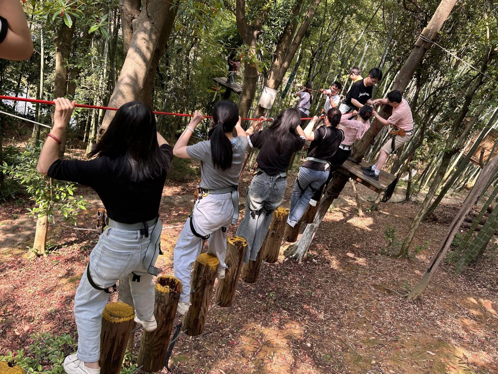 下午,大家來到開福區(qū)素質(zhì)拓展訓(xùn)練基地,開啟了一場腦力對決和體力對決。“名字大作戰(zhàn)”、看圖猜猜猜、歌曲接龍等一個個精心設(shè)計的團隊小游戲激發(fā)了大家濃厚的興趣和參與熱情,在燒腦的游戲中發(fā)揮才智、相互熟悉,進一步加深彼此間的了解和友誼。“飛越叢林”挑戰(zhàn)更是把本次活動推向了高潮,在一個個高空關(guān)卡中,大家相互幫助,相互鼓勁,齊心協(xié)力,集思廣益,順利完成了“看似不可能完成的”項目。