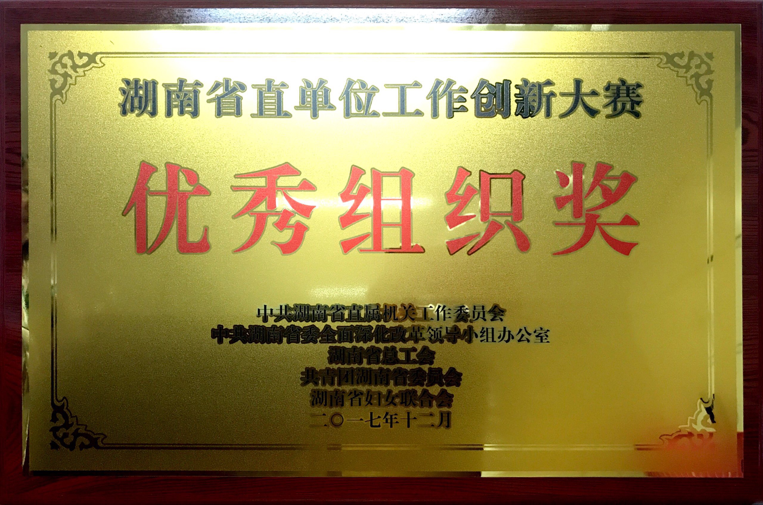 湖南省直單位工作創新大賽優秀組織獎