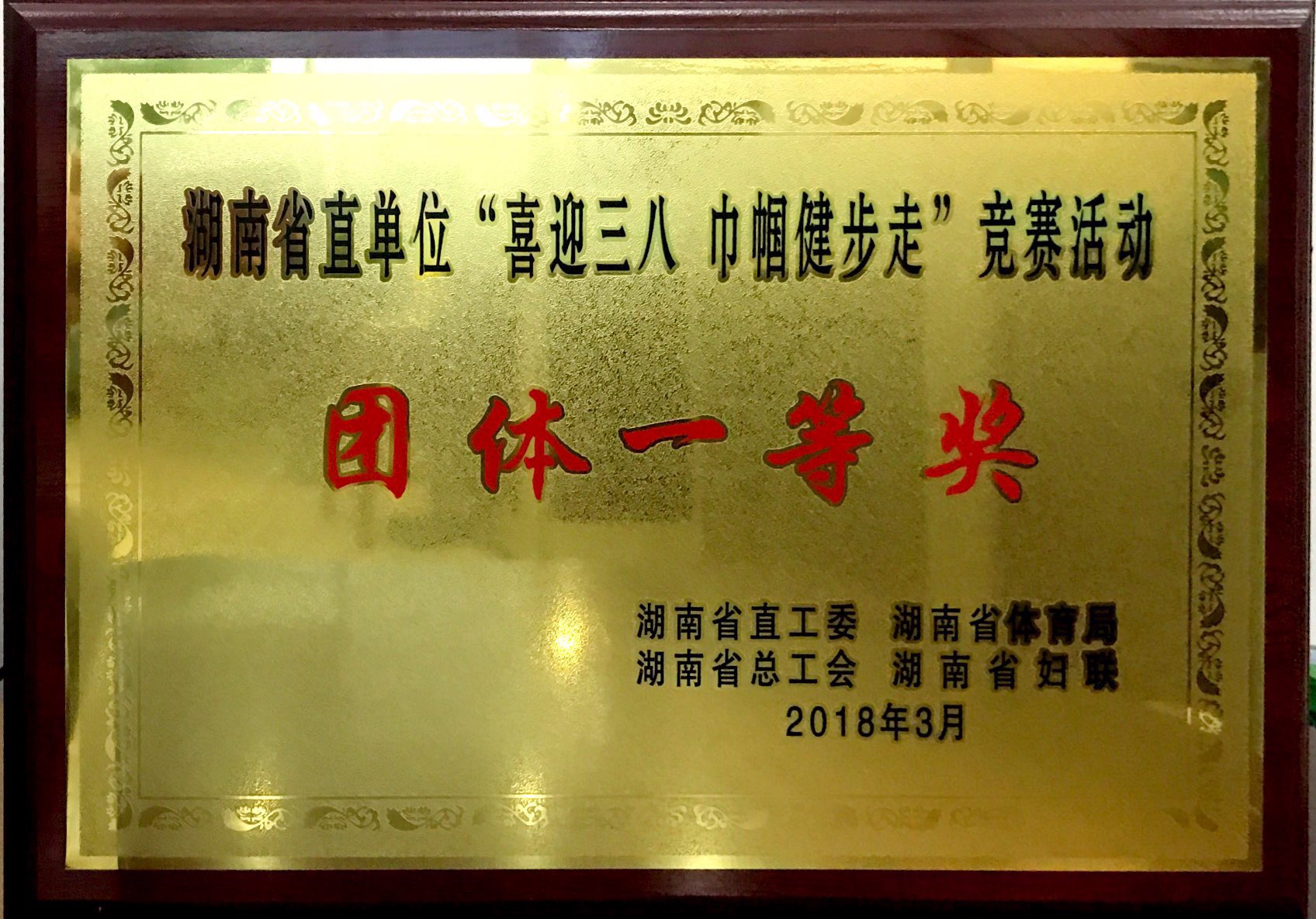 湖南省直單位“喜迎三八 巾幗健步走”競賽活動(dòng)團(tuán)體一等獎(jiǎng)