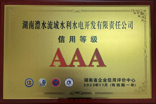 評審組對澧水公司基本情況、行政管理、經營信息、公共信用、招標投標信用等方面進行綜合評價,一致認為,公司抗風險能力高,信用狀況優秀,被評為“AAA級信用企業”。